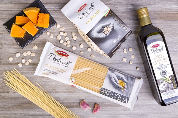 Broken Granoro Dedicato Spaghettoni with pumpkin and chickling peas