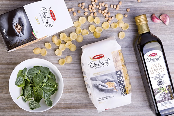 Granoro Dedicato Gnocchetti Sardi with chick peas, olives, ginger and rocket