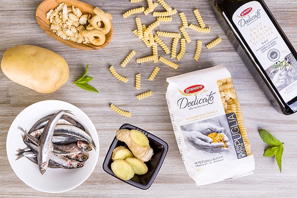Granoro Dedicato Fusilli Bucati with anchovies, potatoes and ginger.